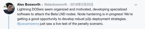 闪电网络开发者之一Alex Bosworth曾在Twitter上发布过这一惩罚机制的测试结果