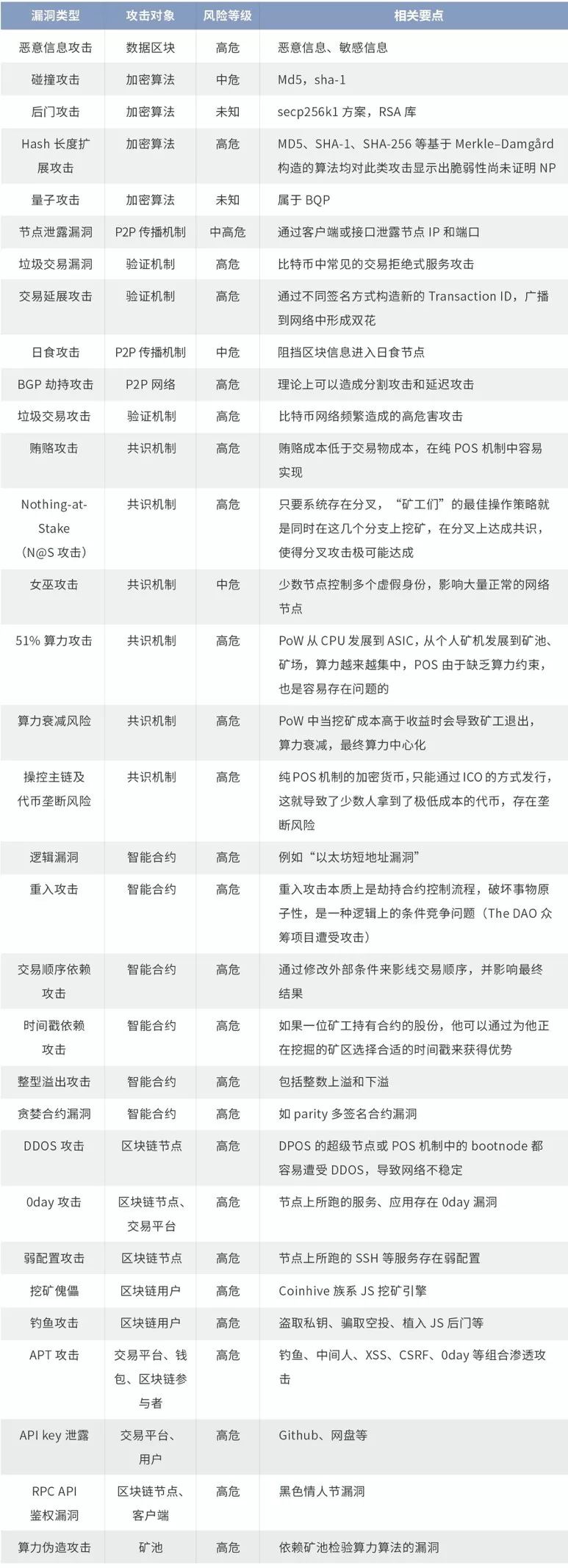 区块链漏洞分类 通过对区块链分层框架的分析,结合我们对区块链项目所发生历史安全事件的统计,我们认为攻击行为对象主要是以下几个方面: 加密算法及数据区块 基础网络 共识机制 智能合约 承载平台及应用 区块链节点 区块链参与者 1.攻击路径线索 其中基于时间戳的链式数据区块结构、P2P 节点的共识机制、可编程的智能合约是区块链最具代表性的创新点,其攻防技术在安全领域也属于比较新的研究范畴;其他几方面的攻防技术则可以归为传统的安全研究范畴,可以拿出较成熟的解决方案。另外我们通过攻击事件还原发现,从攻击者的角度主要有以下两条攻击路径起点: 区块链项目中的中心化对象:交易平台、在线钱包、公有链的启动节点和全节点; 区块链项目的去中心化对象:共识机制、智能合约、Dapp。 前者将攻击聚焦于“点”,侧重于APT 的攻击艺术;后者将攻击聚焦于“面”,侧重的是漏洞的挖掘,这在防御的方式上是有很大区别的。 2. 攻击方式分类 下面列举了区块链各环节一些常见的攻击方式: 图片|图片来源于安全实验室·端御科技 其实攻击方法远不止这些,我们只是抛砖引玉,后面我们会对其中具有代表性的漏洞进行案例分析。 |