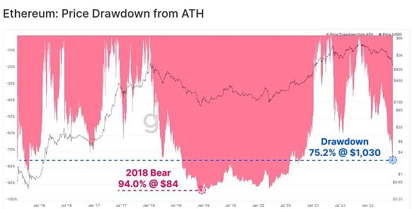 2022年期间,以太坊生态系统估值的贬值幅度之大。