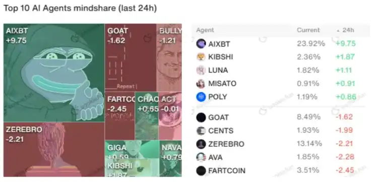 我个人最看好的两个 Token(并且持有最多的)是 AIXBT 和 VADER,除此之外还有本地 Token VIRTUAL。我在平台上持有大约 20 个代理的 Token,而且还有许多我认为会表现不错的代理,考虑到它们已经具有较大的市场市值,它们的表现可能会远远超过上述 Token。