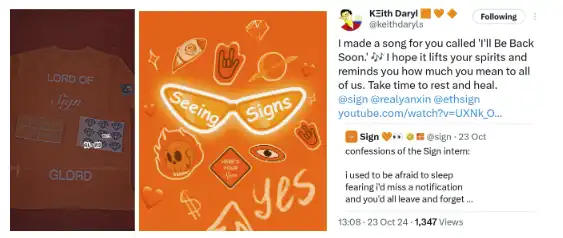 从线上到线下,Sign 的感染力呈现病毒式扩散:韩流巨星 Jay Park 空降活动现场,社区成员自发设计的周边产品层出不穷,原创主题曲、娱乐网站、5 个蓬勃发展的周期性 Space、线下墨镜推广浪潮...... 每一个细节都在见证着这个社区的强大生命力。由此可见,Sign 已然超越项目本身,演变为一场席卷 Web3 的文化现象。