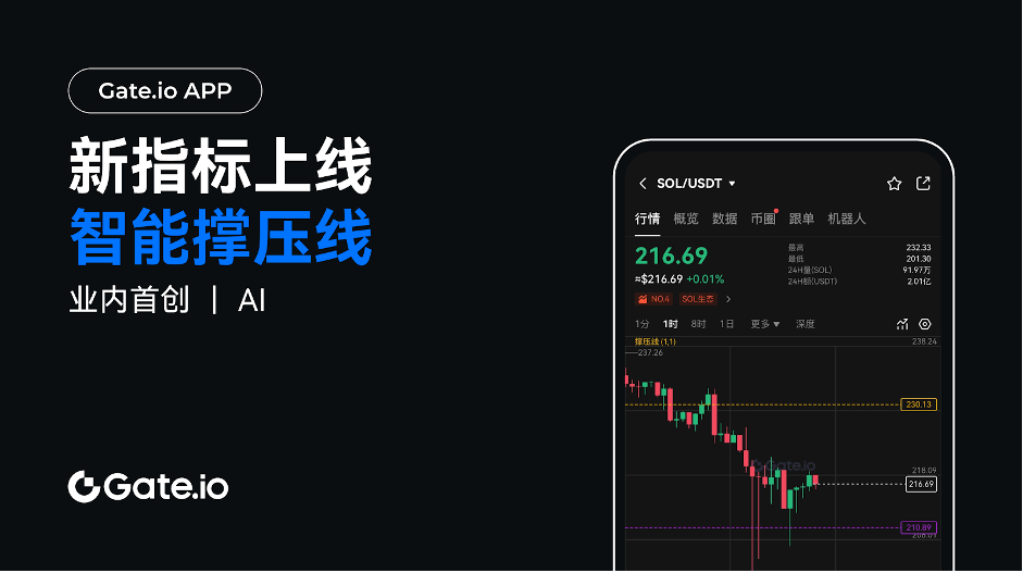 Gate.io 是行业首家支持撑压线指标的交易平台。以 AI 算法结合 BOLL20 与实时市场数据,该指标可帮助用户快速识别价格运行中的支撑与压力线,判断价格可能的运行区间。基于此,用户能够在现货、杠杆和合约交易中精准设置止盈止损点,优化交易策略,提升交易效率。