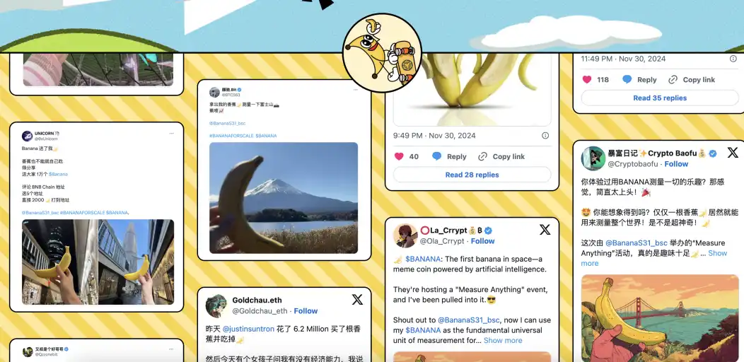 2024.12.13:传播-「香蕉丈量万物」活动持续传播,集成香蕉画廊。参与数 20K+,观看量 600K+,参与加密 KOL500+