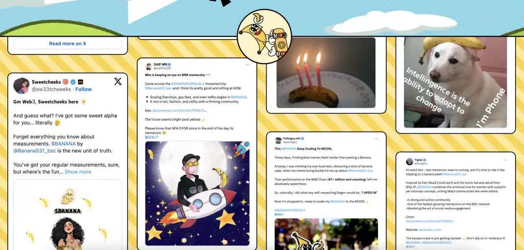 一个强大的 Meme 需要一个伟大的社区,像 PNUT,ACT 都是伟大社区合力打造的文化标杆。BANANAS31 同样拥有强大的社区在建设,但与之不同的是,这一次是发生在 BSC 链的故事。