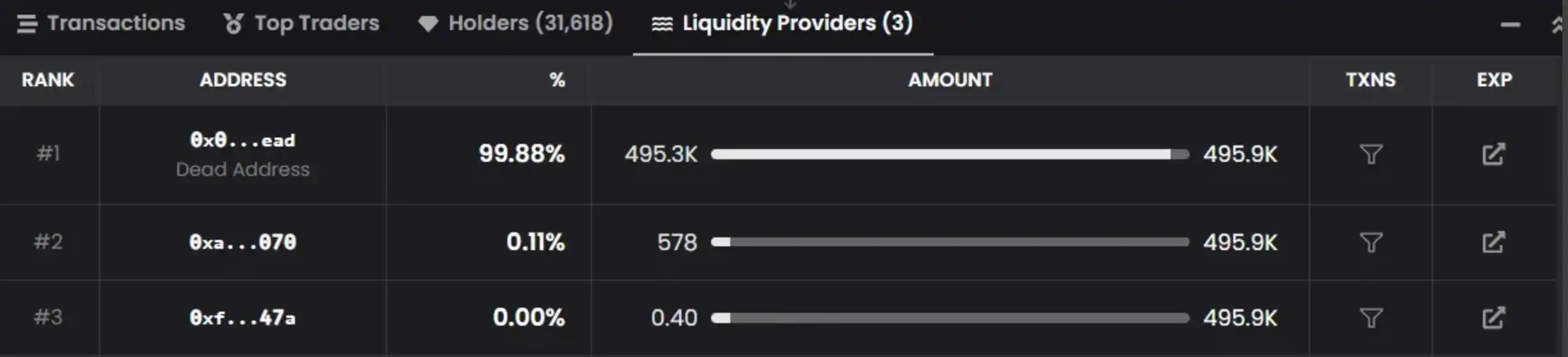 BANANAS31 发射之初由于大家对马斯克热点的追逐,使其迅速打满内盘上线 Pancake,但「追逐热点」的 Meme 大多生命周期很短,在 BANANAS31 市值不断上涨的过程中,Dev 创建者 @World_Terminal_发推宣布 burn 掉流动性池。一方面「烧池子」是一个利好,另一方面 Dev 也放弃了对项目的主导,在这个时间点社区自发的接手了运营工作。