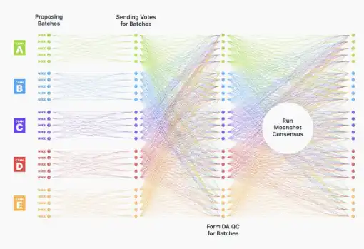 · 部落节点运行 Supra 的 Moonshot 共识协议。区块提议者通过打包这些 DAQC 及相关批次的元数据来构建区块。