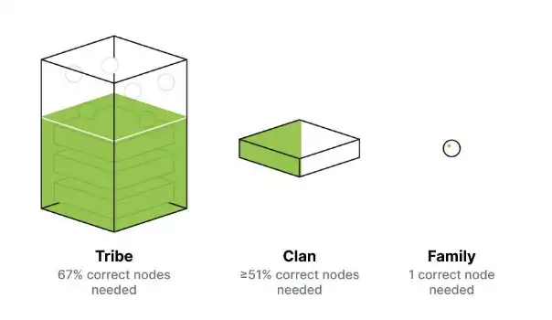 · 氏族(Clan)是一个节点委员会,最多容忍二分之一的拜占庭节点;