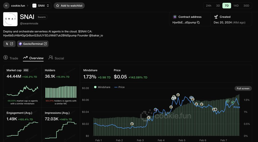 SNAI 在过去 24 小时内暴涨 55%(本周累计涨幅 136%);投机者热衷于无服务器基础设施的概念。