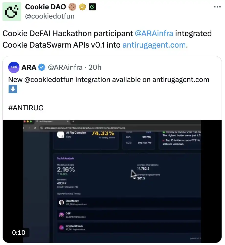 Cookie 黑客松 正如火如荼进行中,这里有一篇来自 ARAinfra 关于 Swarm API 集成的精彩回顾。