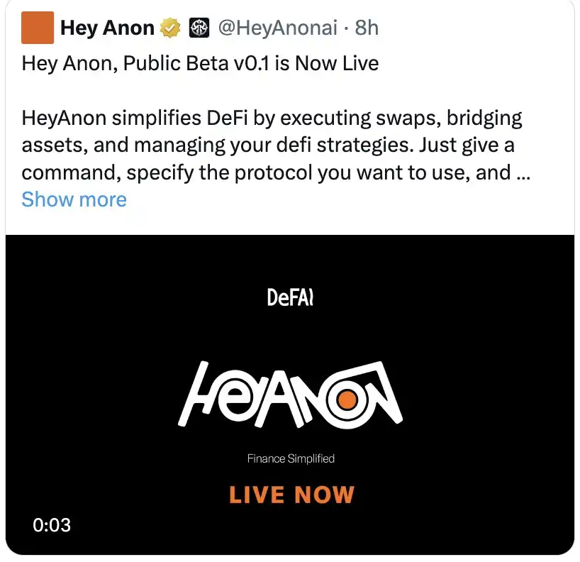 另一个 DeFAI 解决方案值得关注。HeyAnonai 已经上线,准备好迎接新一轮市场波动!