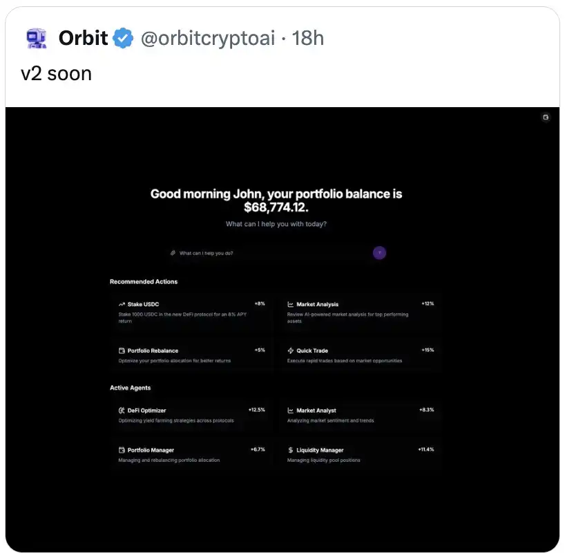 Orbitcryptoai 暗示将为用户推出更新版 dashboard。