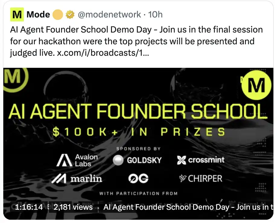 Mode 生态的 Demo Day 即将到来,感兴趣的可以深入了解 AI 生态的最新进展。
