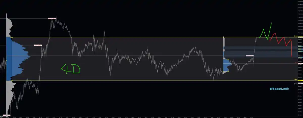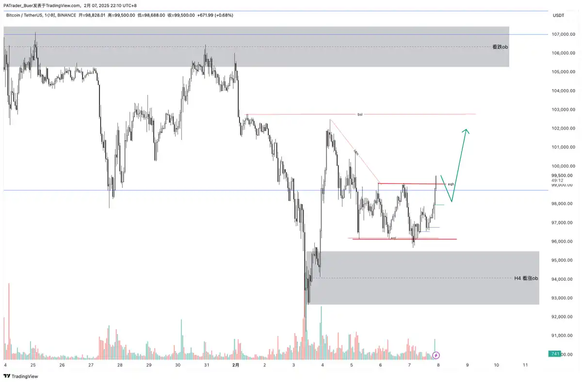 BTC 已经完成了掠夺 eqh。空头请注意你的仓位,多头关注回踩买入机会。