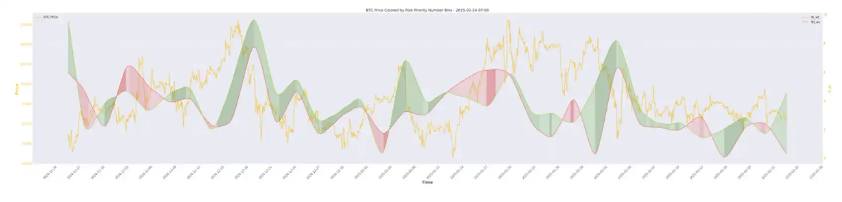 ⾃BTC⾼位震荡以来⻛险系数第⼆次进⼊红⾊区间,意味着本周衍⽣品多头的清算⻛险⼤幅提⾼。