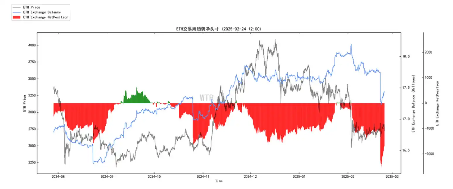 ETH 交易所净头⼨持续性⼤量流出累积。