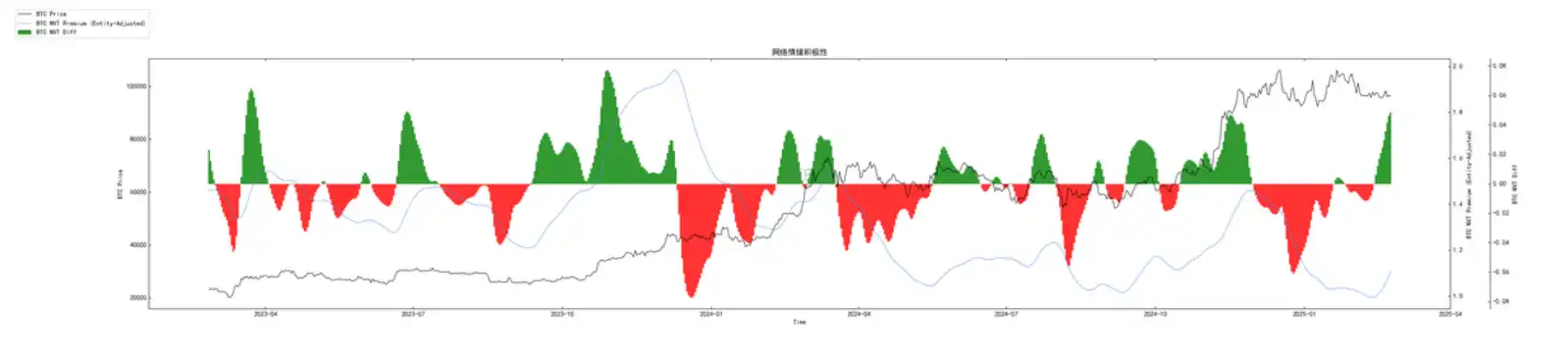 当前市场积极情绪 (蓝线) 和恐慌抛情绪 (橙线) 都处于极低⽔平。预期市场仍会处于震荡模式。