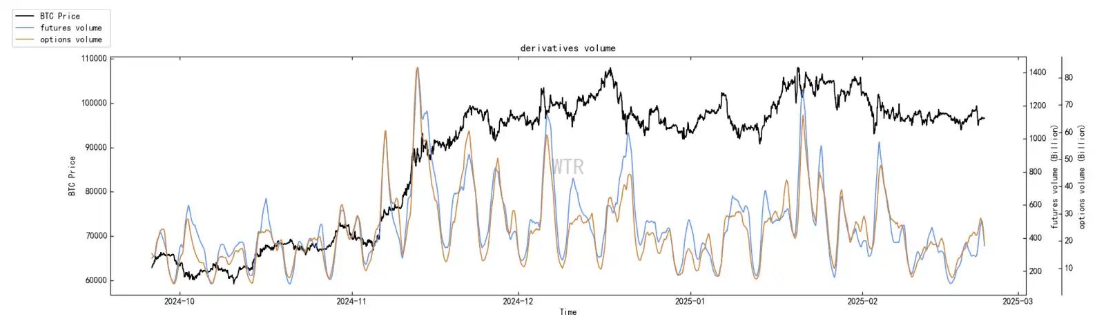 持续震荡以来衍⽣品交易量持续减少,表明市场活跃度降低。