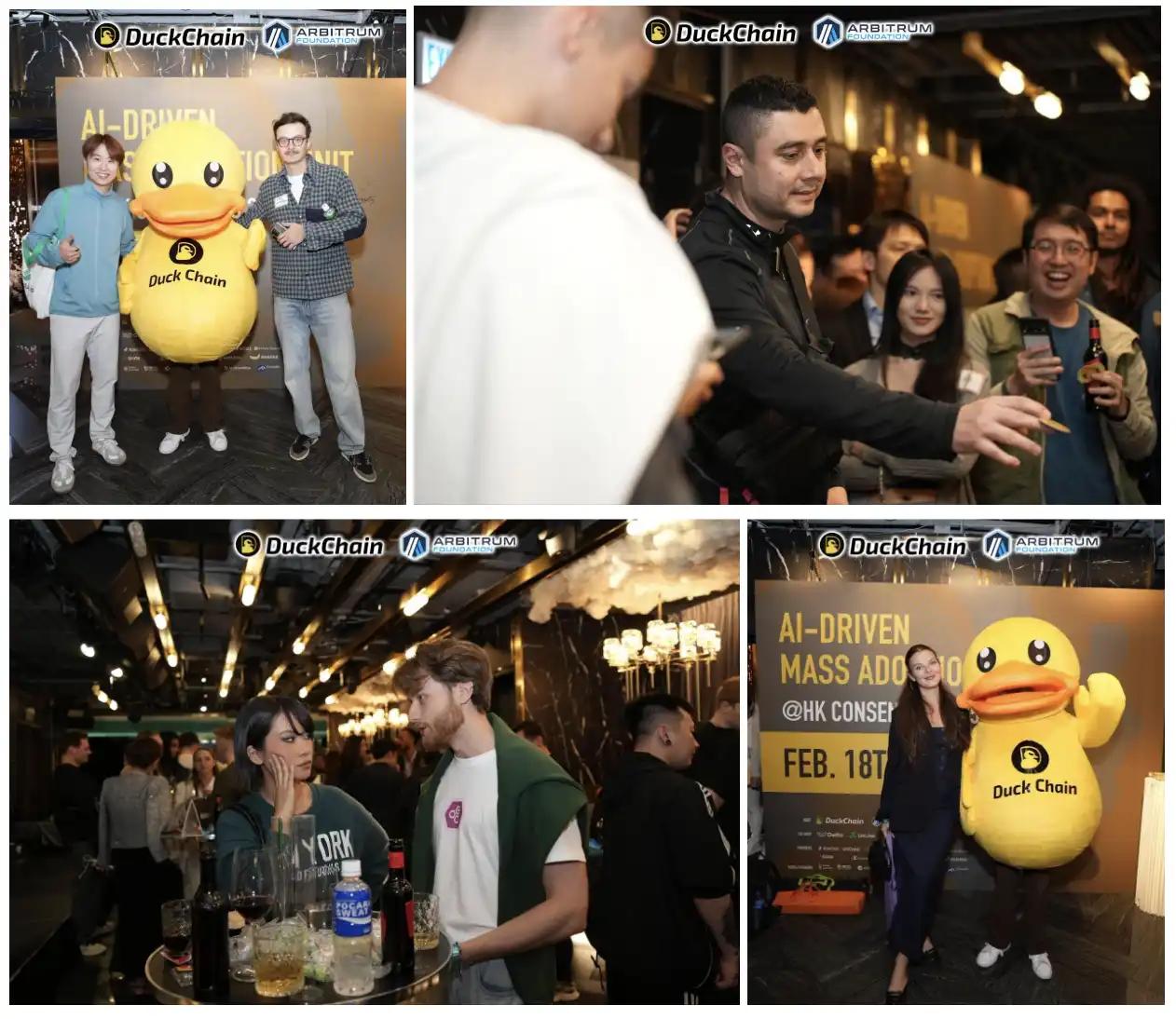 2025 年 2 月 18 日,DuckChain 携手 Arbitrum 在香港铜锣湾成功举办「AI-Driven Mass Adoption Unit」主题活动。本次活动汇聚了 Web3 与 AI 领域的核心项目方、投资机构、开发者及生态建设者,共同探讨 AI 赋能 Web3、推动 Mass Adoption 的创新路径。