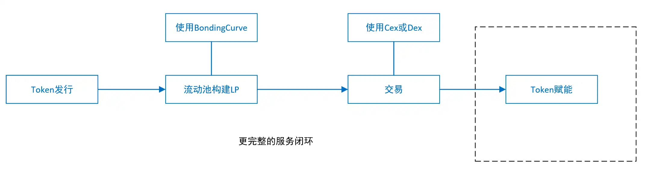 如果不配合技术和应用创新,当前行业内各种的项目依靠喊单模式是持续不了多久。最终也还是 VC 币和 meme 币的问题重现。其实,pumpfun 提供了一个可以参考的框架,它的爆发和以后的消亡是因为还缺少一个重要环节:Token 的赋能(也称为价值捕获与价值注入)。如下图所示