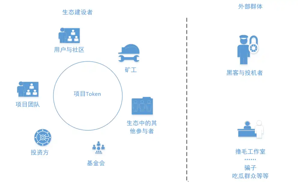 在不同的利益群体中,既要防止生态内部的某个利益方拿走过多的利益,如在 VC 币项目中项目团队和投资者拿走了大部分 Token 的价值,后期没有持续的建设动力,也要防止被外部群体拿走不当的利益,如 memecoin 币中的投机者。