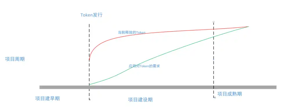 项目过早释放的 Token,也就是介于红线和绿线之间的部分,需要使用流动性锁定功能,不能让某一利益方提前拿走。这些锁定的 Token 以及建设期间的项目进展就涉及到管理问题。