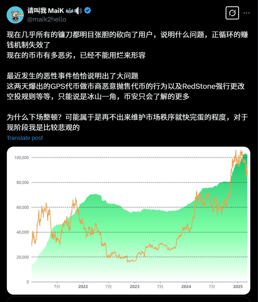 这些事件让人不禁联想到币圈的顽疾:信息不对称、规则更改随心所欲,强者「收割」散户。正如推特网友 @maik2hello 在帖子中感叹:「现在的币市,『烂』都不够形容了。」