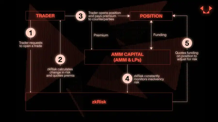 zkRisk是 Vest Exchange 的核心定价机制,堪称平台的「超智能管家」。它实时监控个体持仓、账户风险敞口及系统整体风险,根据市场动态调整定价,目标是最小化风险而非最大化利润。