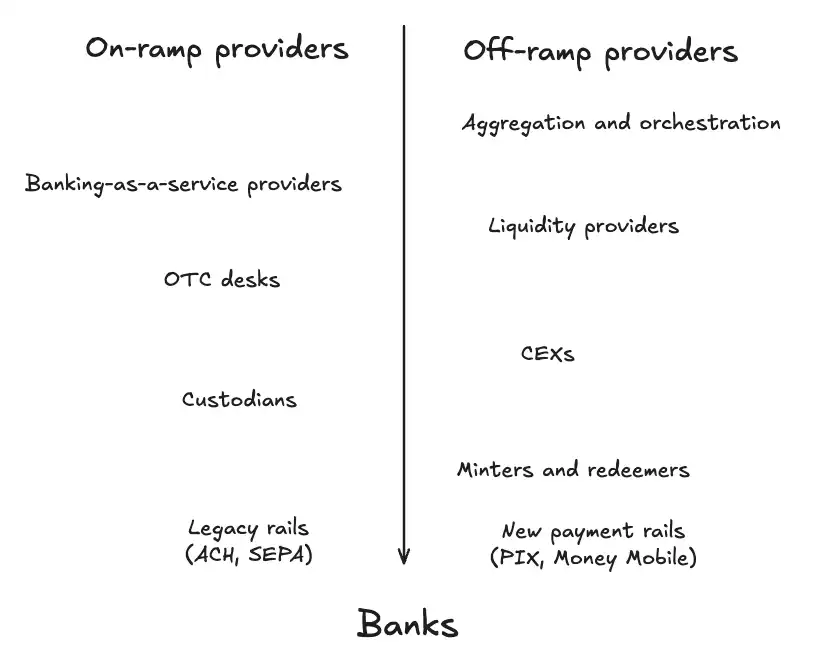 在我们构建的支付栈中,on/off-ramp 服务提供者就位于正中间的位置。