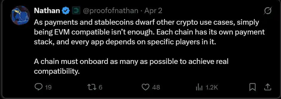要实现这一目标,它们必须重新思考自己的支付栈——仅仅兼容 EVM 已经远远不够。