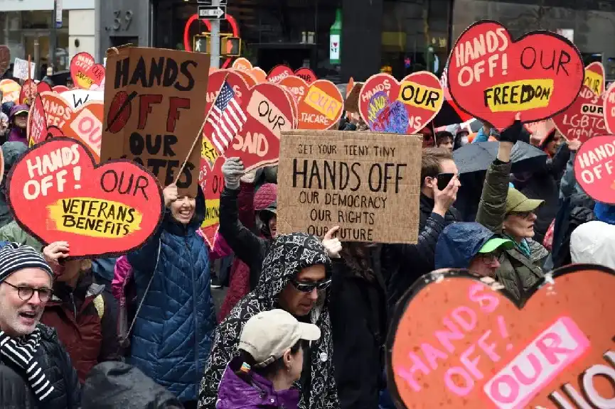 2025 年 4 月,全美 50 个州 1300 多个城镇爆发抗议活动,参与人数达数百万。华盛顿特区聚集超 10 万人,纽约、芝加哥等城市游行规模均超 2 万人。示威者抨击关税政策「背叛美国立国根基」,并指责其推高生活成本、加剧社会分裂。最新民调结果显示,上台还不到三个月的特朗普,其受美国民众认可的程度已经下降到 46%,过半数的人对特朗普的政策表示质疑。
