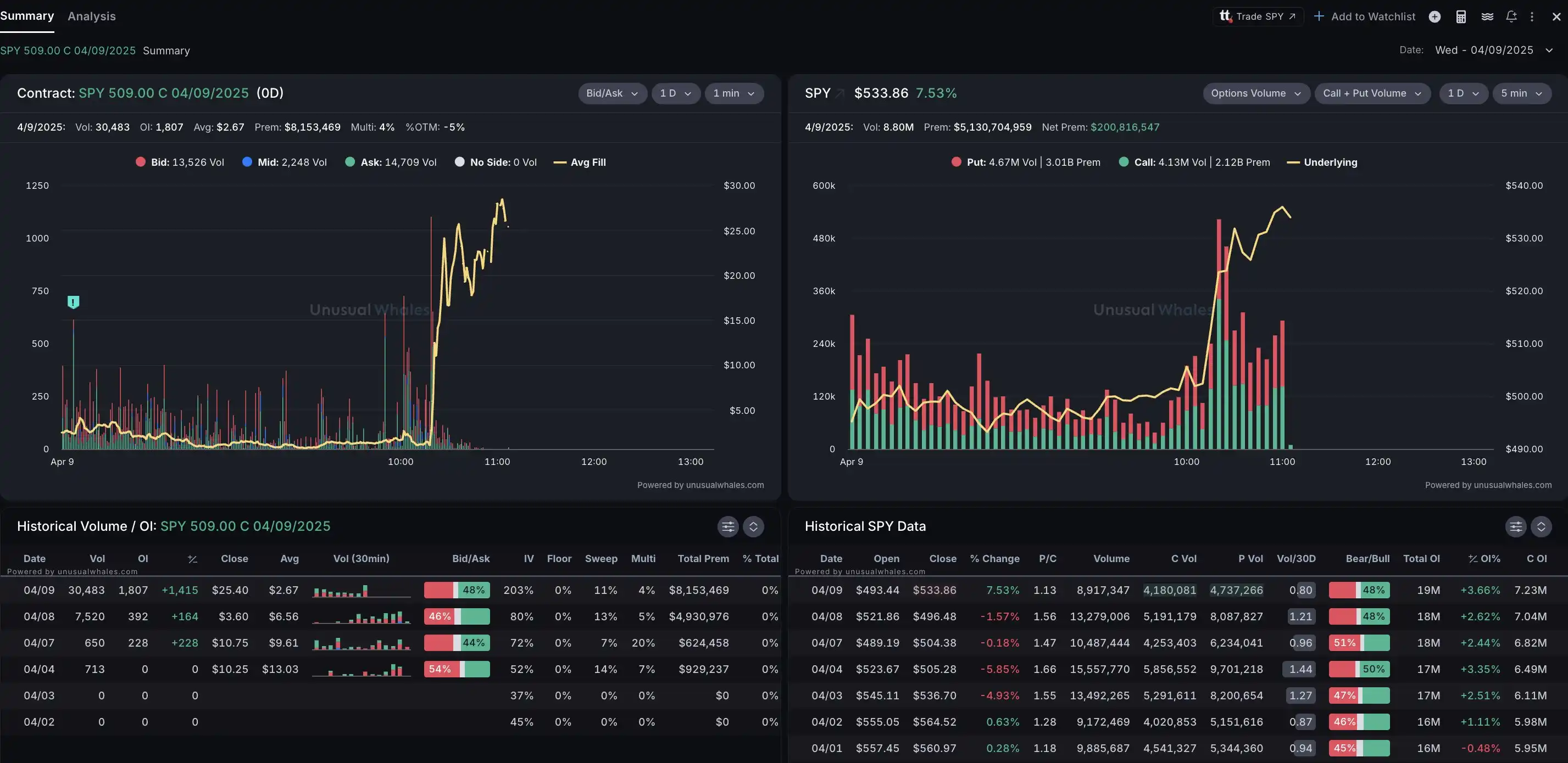 根据 Unusual Whales 披露的数据,在特朗普在 Truth Social 上发「买入」之前,交易者们就已经开仓了$QQQ、$TQQQ 和 $SPY 的看涨期权。而有人在消息发布之前开了 $SPY 509 的看涨期权,到期日就是今天,这些期权在一小时内上涨了 2100%。