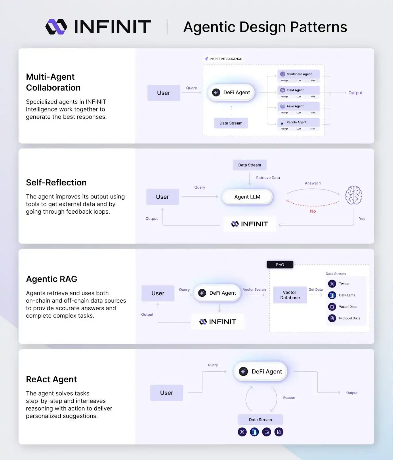 接下来几个月,INFINIT 将推出 DeFi Agent Network——一个模块化架构,允许开发者基于 INFINIT 构建专属的 DeFi Agent,并与平台原生智能系统无缝协作。