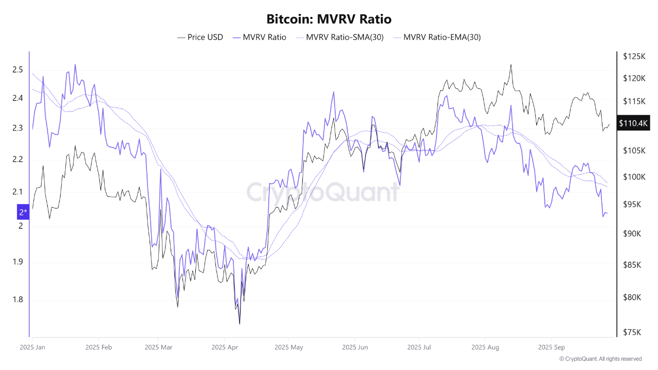 - 链上 MVRV 比率表明市场具有韧性,表明比特币投资者既没有恐慌也没有兴奋。