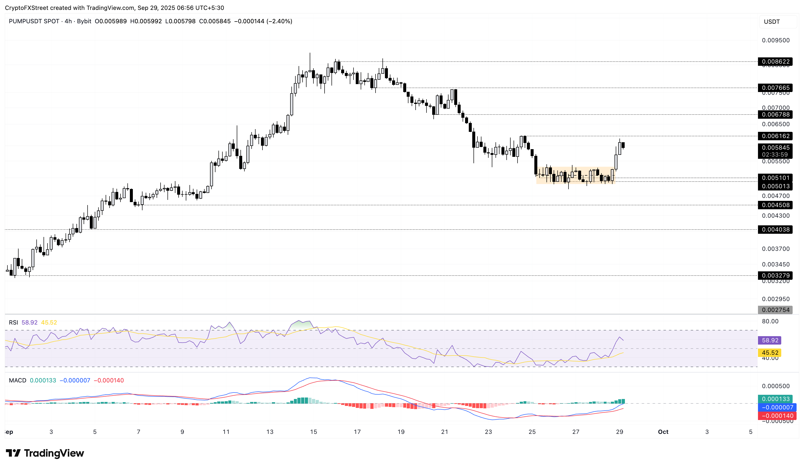 - Pump.fun 从 0.005000 美元的心理支撑位反弹,瞄准关键阻力位。