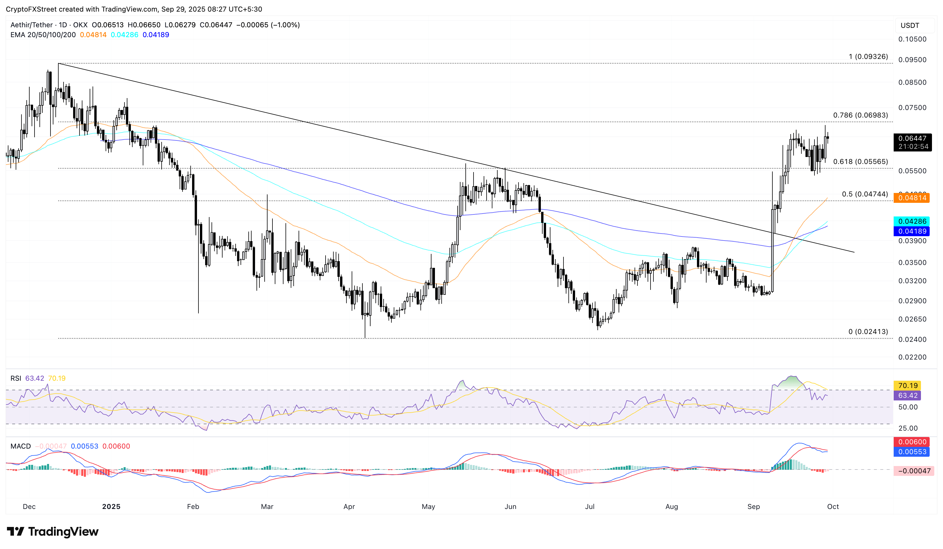 - 由于势头仍然不稳,Aethir 在盘整区间内复苏。