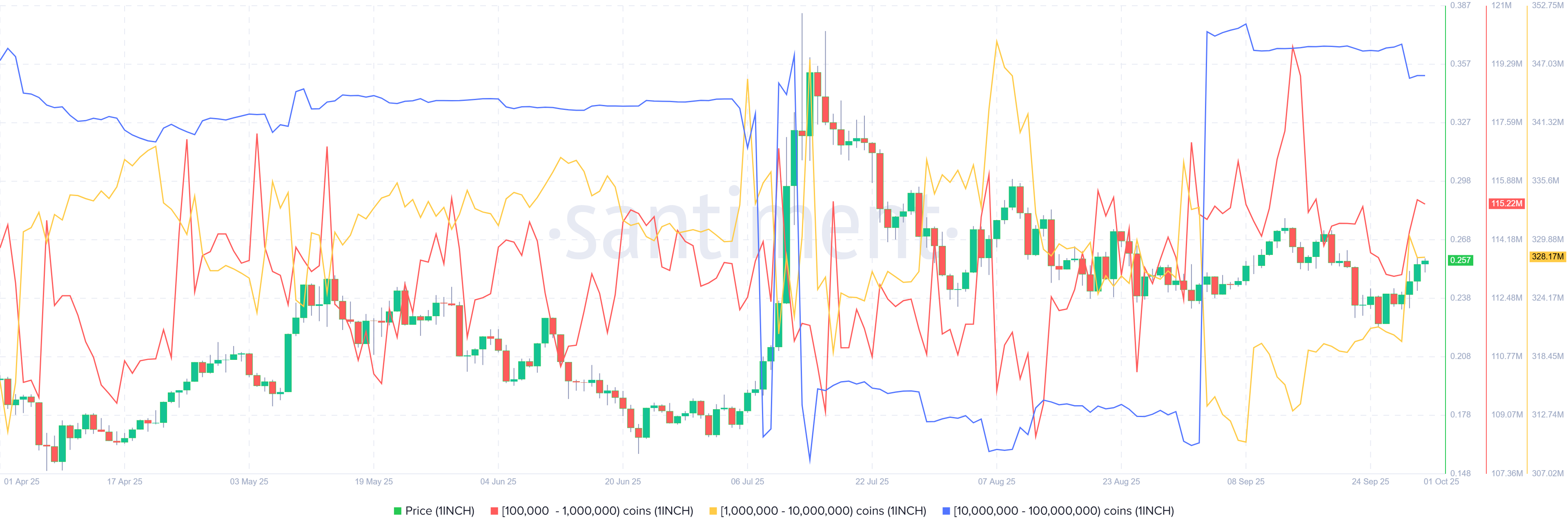 Santiment 的供应分布数据支持 1INCH 的看涨前景,因为某些持有者在最近的价格下跌期间已经积累了资金。