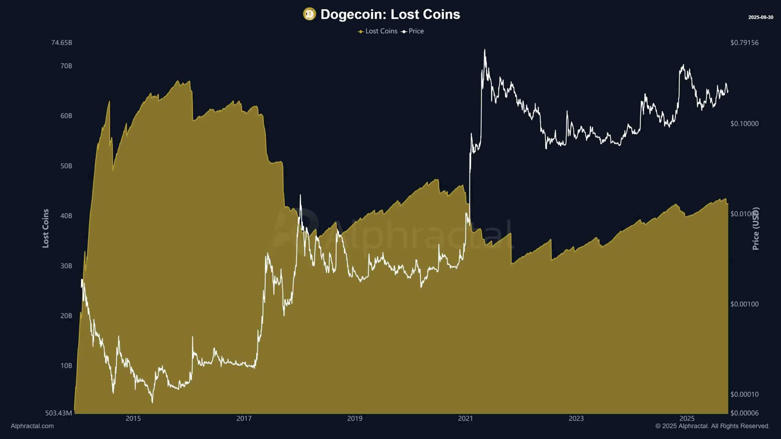 分析师经常低估“丢失币”在塑造供应动态方面的作用。当该指标上升时,通常表明早期钱包的抛售不足,这往往会转化为价格的横盘走势,甚至出现熊市
