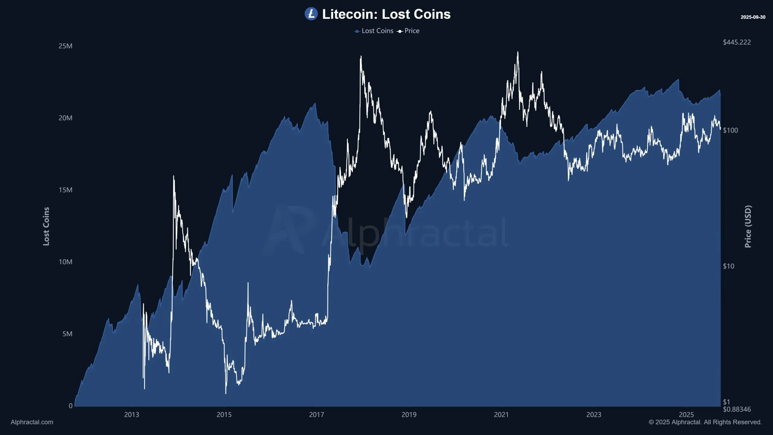 Alphractal 的最新数据显示,比特币、莱特币和狗狗币的“丢失币”指标持续经历重大变化,而这一因素在价格分析中经常被忽视。