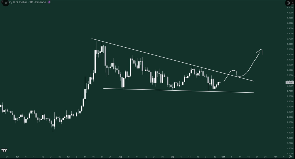短期图表显示XRP自7月份代币突破3.60美元以来,价格开始下跌,目前处于收缩状态。根据报告,Gordon分享的图表显示,价格正在收紧,即将突破。