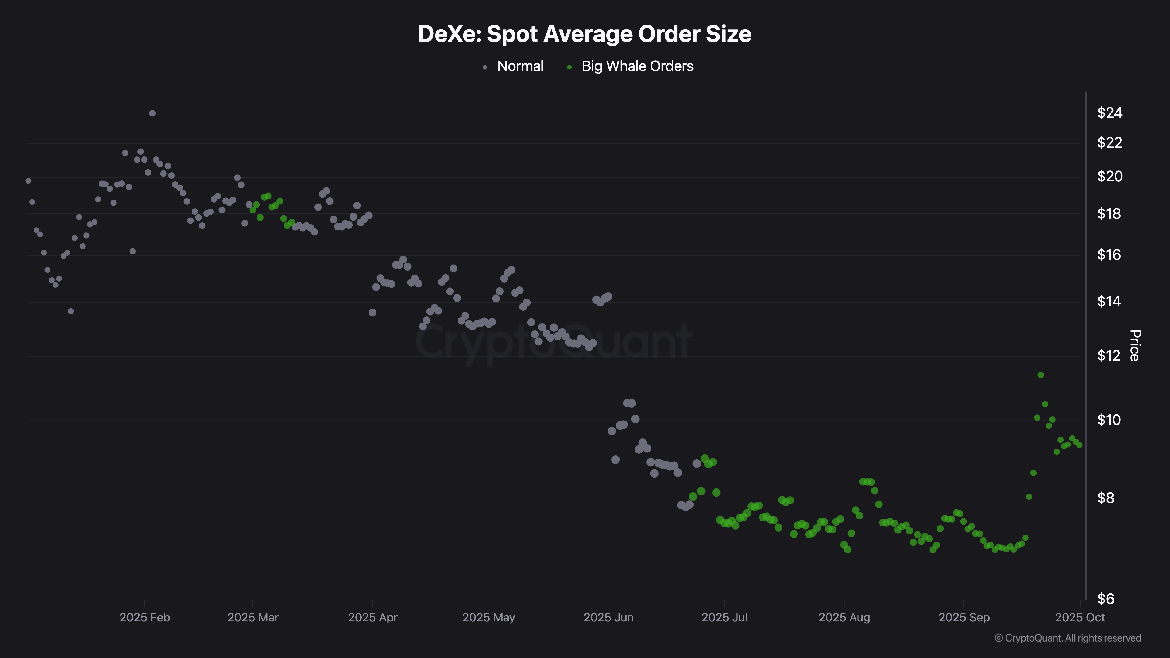DeXe 现货平均订单规模。来源:CryptoQuant