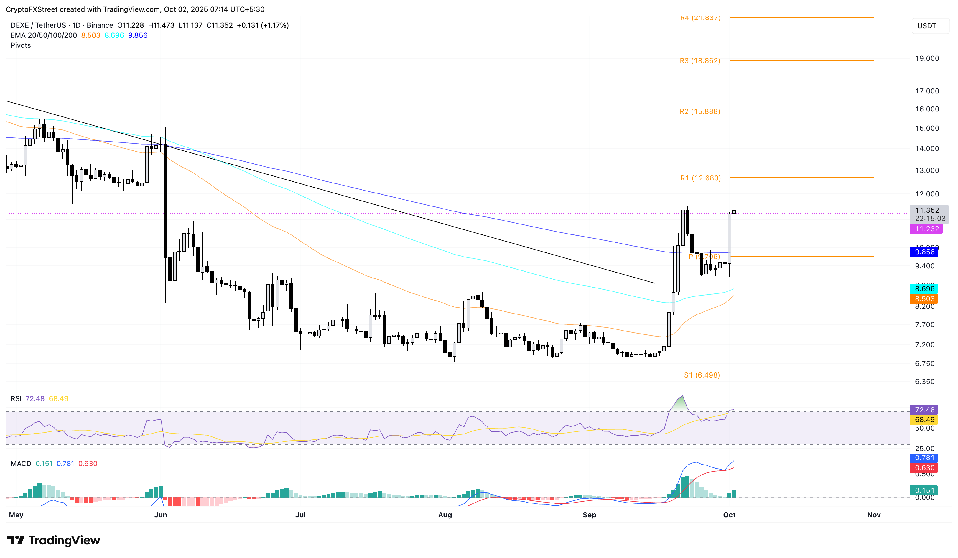 - 由于看涨势头持续高涨,DeXe 延续涨势。