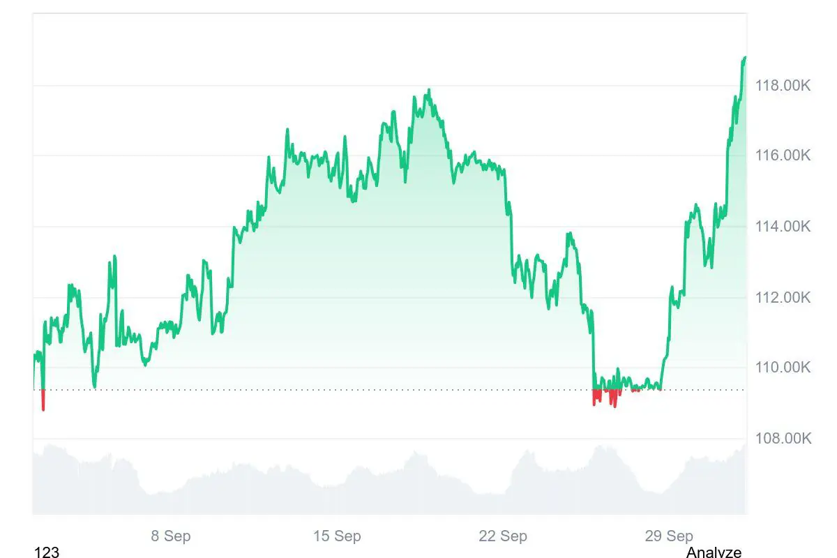 10月1日,比特币价格飙升至11.8万美元,创下自8月中旬以来的最大涨幅。尽管社区中许多人担心美国政府关门会导致市场崩盘,但实际上,这反而推高了风险资产的价格。