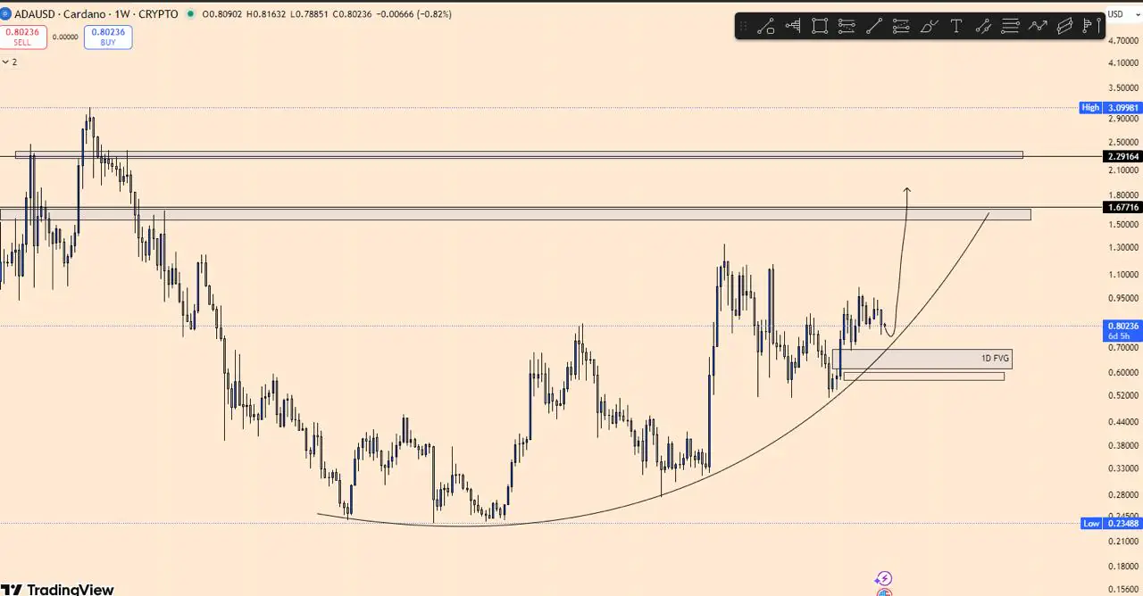 卡尔达诺 (ADA) 经过一个月的盘整后强势反弹。山寨币
