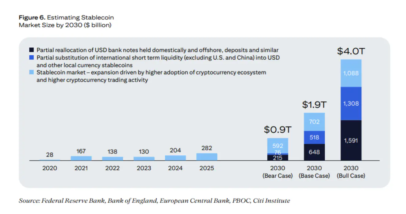 这也是一个保守的估计。在最好的情况下,花旗的报告表明稳定币可能增长至 4 万亿美元到本世纪末。