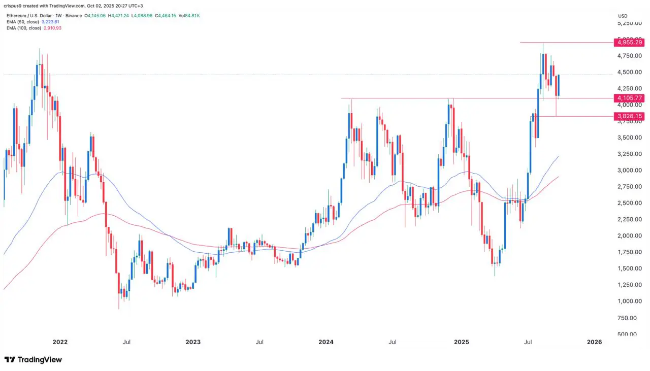“>期货交易额达到 973 亿美元。以太坊期货未平仓合约也增长了近 2%,达到 590 亿美元。SoSoValue 的数据还显示,以太坊现货 ETF 近期交易额达到 8079 万美元,连续第三天保持积极势头。分析师阿里·马丁内斯 (Ali Martinez) 指出,这是值得关注的最重要阻力位之一。如果 ETH 成功突破该阻力位,则可能突破 5,000 美元。下行方面,跌至 3,828 美元可能会拖累 ETH 回落至 3,500 美元。尽管存在这些发展趋势,投资者也在探索其他机会,尤其是具有早期潜力的投资机会,例如 2025 年最佳加密货币预售平台 Remittix。