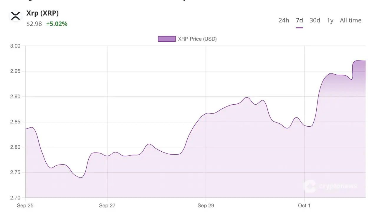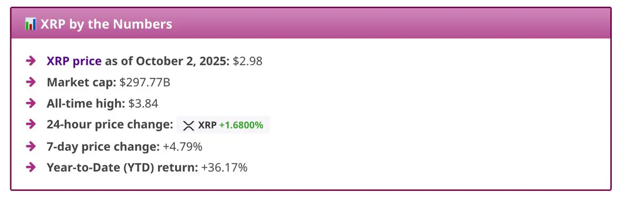 “>SMA可能会引发 30% 的反弹3.62 美元根据技术分析。分析师项目10月份,XRP交易价格在最低2.87美元至最高3.25美元之间,ETF裁决前的延伸目标价为3.60-3.62美元。渣打银行维持其年底5.50美元的预测,而一些分析师认为,如果供应冲击加速,其价格可能达到9美元。