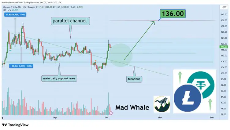 突破 136 美元,LTC 或将升至 150 美元以上,而下行风险仍在 95-105 美元支撑位附近,若跌破,可能跌至 80-90 美元。莱特币的预测范围从 100-120 美元的稳定基线到 200 美元的看涨(如果机构资金回流)。鉴于 ETF 消息、市场轮动以及支付用例的韧性,LTC 仍有可能在 2025 年重新成为中型股的重要竞争者。