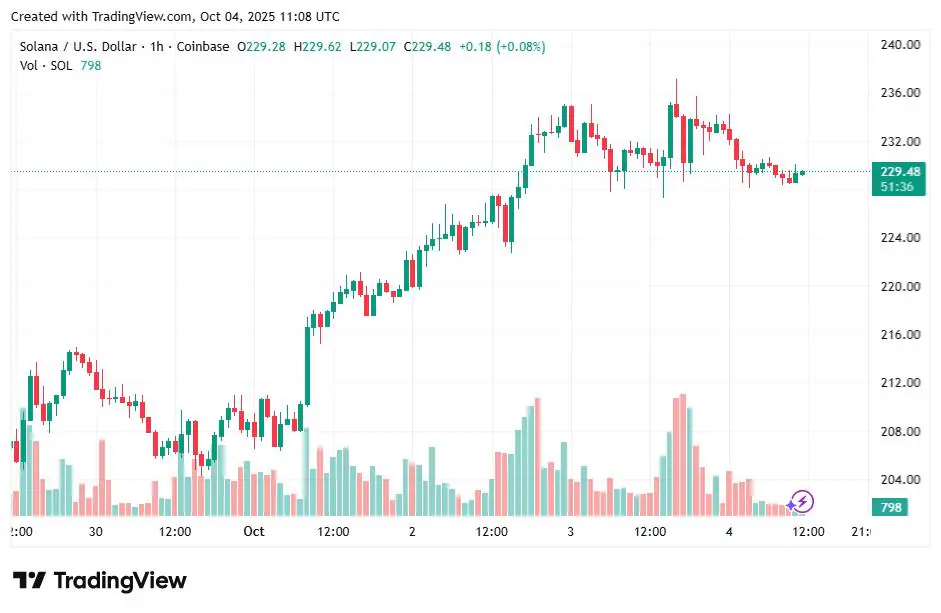 Solana (SOL) ç®å交æä»·æ ¼çº¦ä¸º 229 ç¾å ï¼å¨æ¬å¨é£åååºç°å°å¹ åè°ã10 æ 3 æ¥ï¼SOL æ¾ä¸åº¦æåè³ 236 ç¾å çé«ç¹ï¼éååºç°è·å©ååã