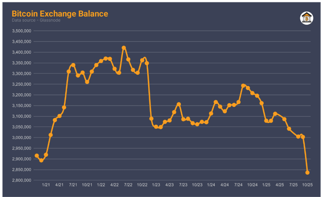 有趣的是,比特币交易所余额已跌至五年来的最低水平。过去30天,近17万枚比特币从加密货币交易所被移除,其中最多的是在刚刚过去的一周。这使得比特币交易所余额自2021年1月以来首次跌破285万BTC。