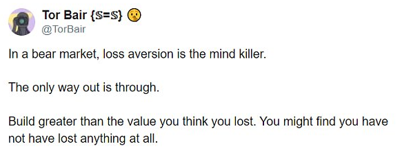 我知道我们会谈论熊市是构建市场,但除非你是开发者或深陷于加密货币,否则你可能不会看到很多建设。如果你对加密货币的主要指标或 KPI 是价格,那么你的奖励突触将在很长一段时间内不会得到加强,你的大脑会变得悲伤糟糕。